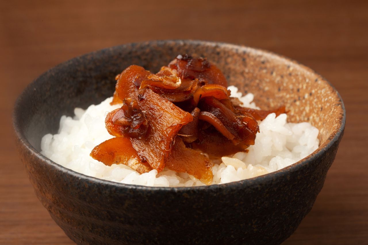 这是一种咸中带甜的小菜,即使没有其他菜肴,仅有它也足够下饭,还常被用做保存食物。做法也很简单,只需把姜片在酱油、砂糖、酒、水等制成的调料汁中熬煮,直至水分收干即可。