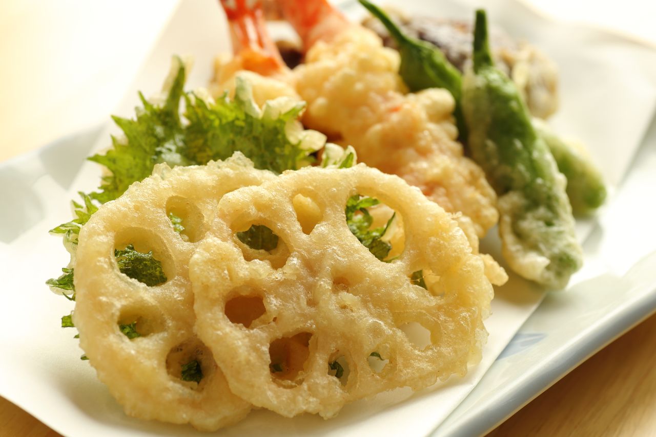 这是一道熊本县的地方特色菜。相传,从前熊本有个体弱多病的老爷,旁人建议他吃莲藕滋补身体,但他嫌莲藕是“在泥中生长的不洁之物”而不愿动筷。于是人们在藕孔中填入芥末味噌,再裹上面粉和蛋黄调制的面衣油炸,令老爷爱上了这道菜,并将烹饪方法严加保密,不传外人。因此,这道菜至今也是仅在熊本才能品尝到的特产。
