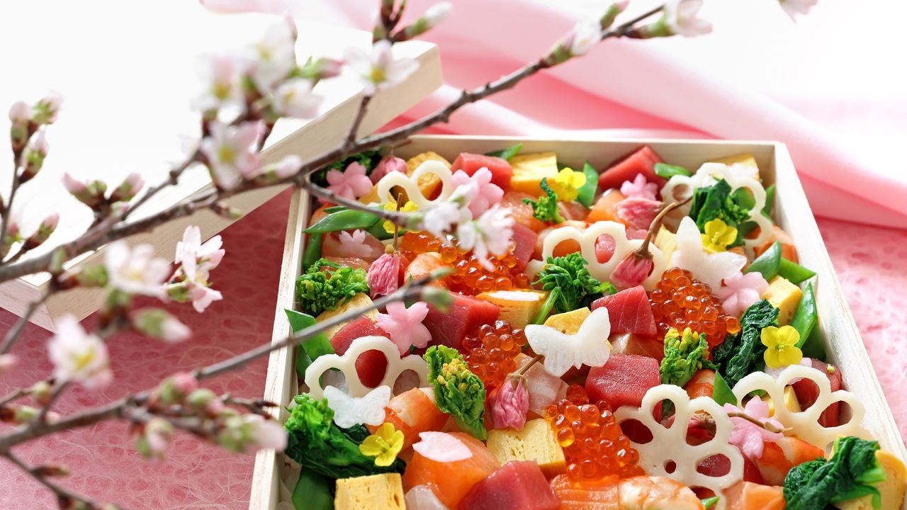 标题图片:装饰有花瓣形藕片的散寿司(PIXTA)