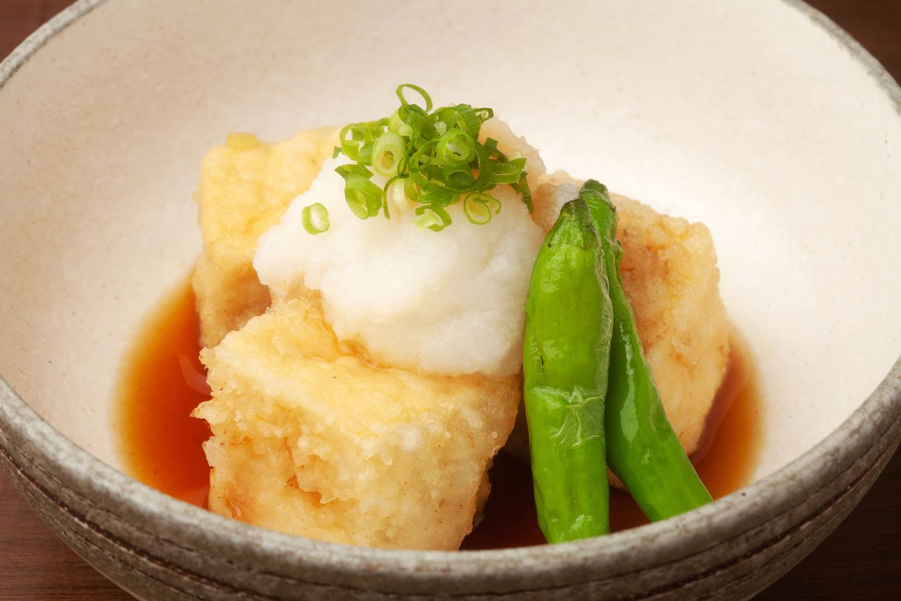 将沥干水分的豆腐裹上淀粉后油炸至金黄,再淋上酱油高汤食用。外皮酥脆,内里软嫩,口感层次丰富!