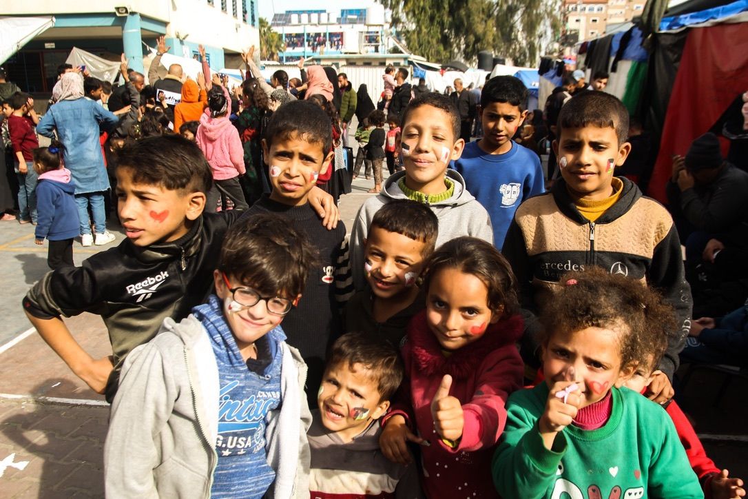 这些来自加沙南部拉法地区的孩子们以面部彩绘的方式为1月1日遭遇地震的能登半岛灾民鼓劲,鼓励他们“不要被地震打垮”。