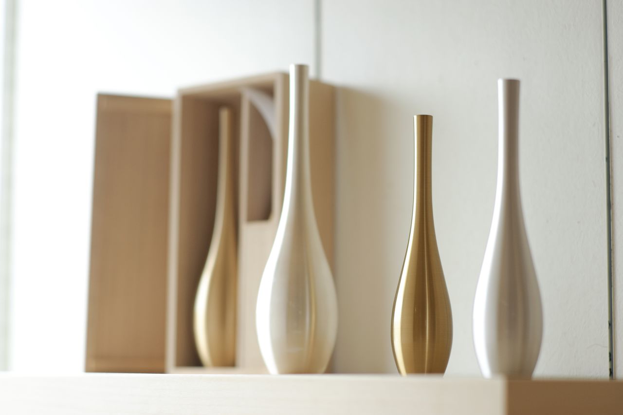 经过熟练工匠的打磨加工后,这些花器最大限度地呈现出金属自身的美