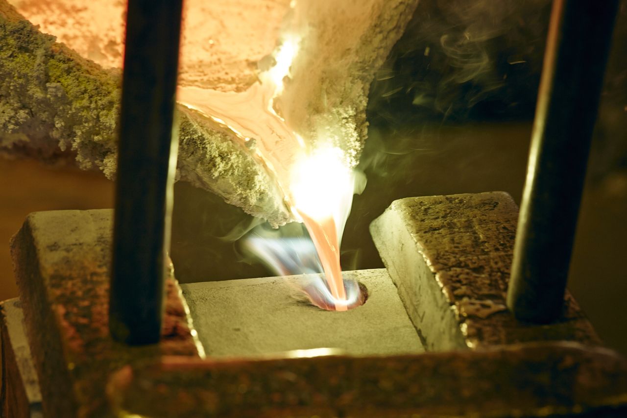 工厂的一大特点是展示铸件的制造过程,人们可近距离看到匠人一边流汗一边将1100度高温熔化的火红金属注入模具,或用打磨机将铸造的金属磨光。
