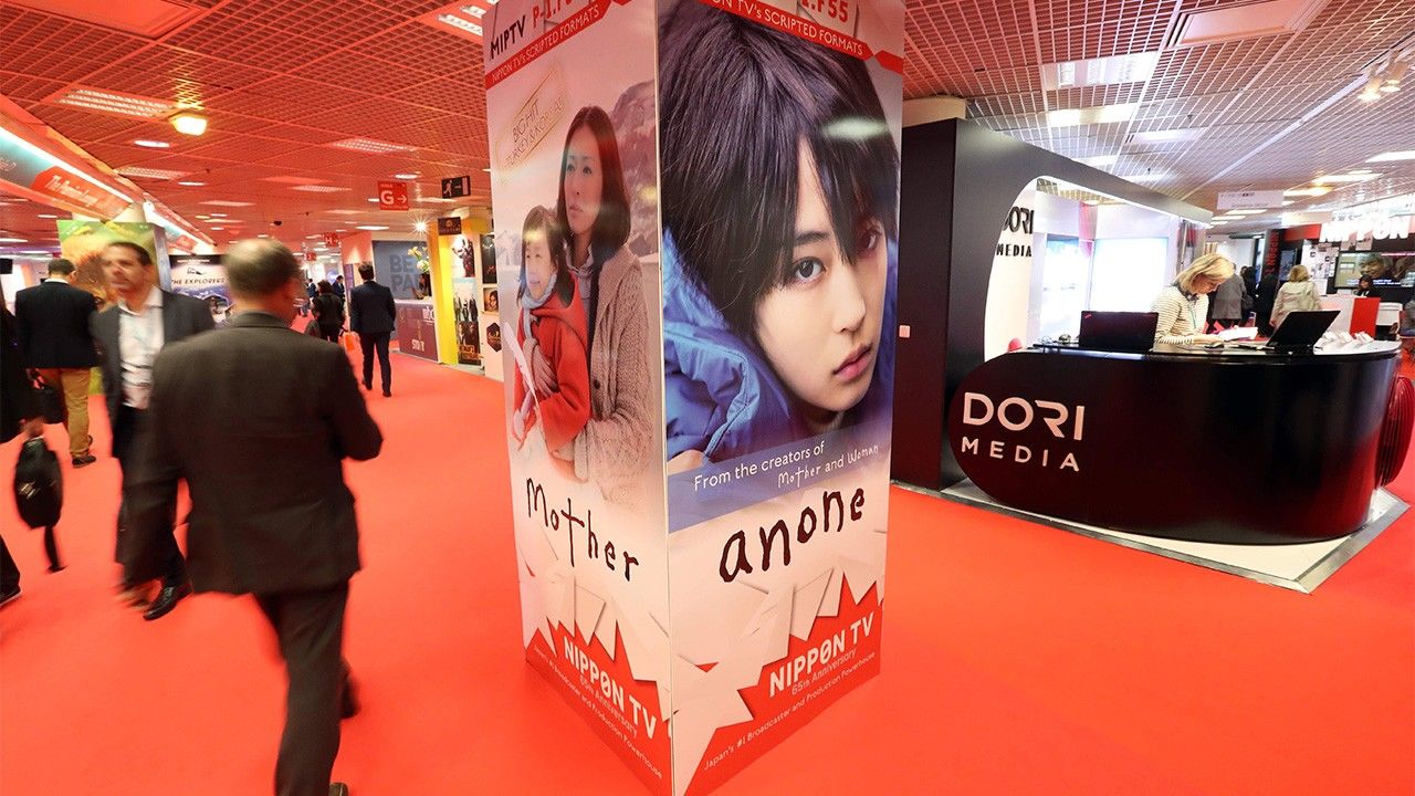 标题图片:2018年4月,法国戛纳。在全球最大规模的电视传媒展览会“MIPCOM”上,日本电视台为推广电视剧而设置的展板。左侧的《母亲 Mother》是为数不多的一部成功“出海”的日本电视剧(AFP/时事社)