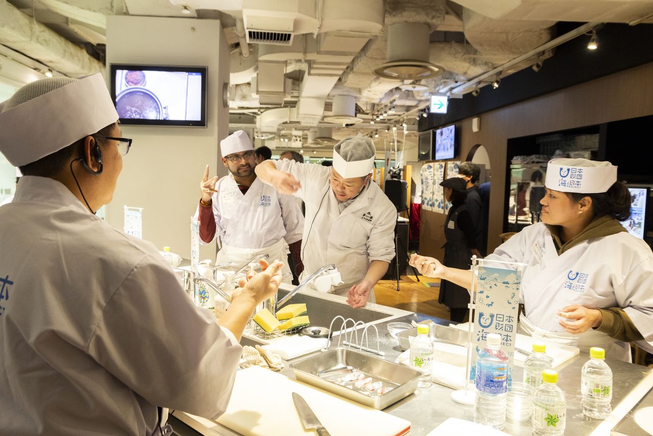 切鱼片作寿司,让旅日外国友人体验庖丁解“鱼”