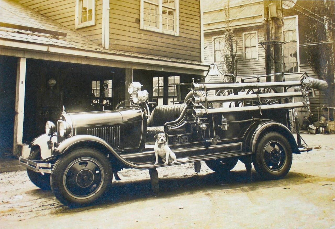 据说只要喊一声“上车!”文公就会马上飞奔至消防车的踏板上;喊一声“下车!”则立刻跳下车(图片提供:小樽市消防总部)