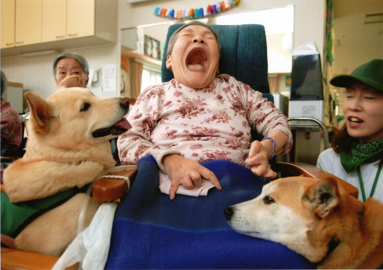 “在东日本大地震发生后我们走访的医院中,人们都知道治疗犬,并且很欢迎我们的到来。有个爱犬被海啸卷走的人,一手抱着爱犬的照片,一手紧紧搂着治疗犬。”