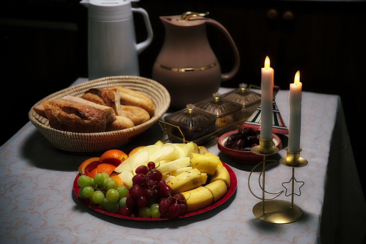 每天禁食的起始时间不同,通常远早于日出时间。也就是说,只要在此之前吃完饭就没问题。这顿拂晓前的早餐被称为“封斋饭”,通常包括椰枣干、水、酸奶以及燕麦等食物。