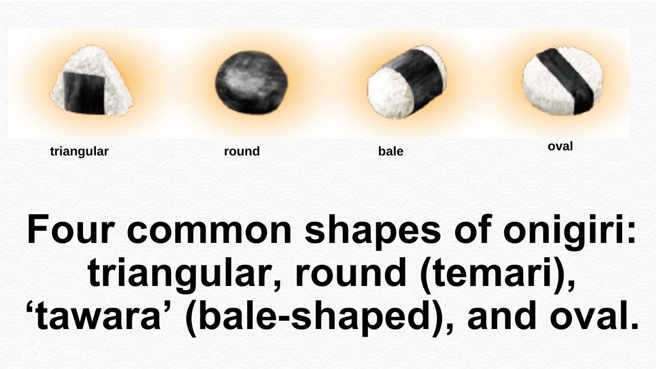 由此,日语中饭团(onigiri)一词最早可追溯至“握饭(nigiriii/nigirimeshi)”。随着时间的推移,“nigiriii”变为“nigirimeshi”,再加上敬语前缀“o”,最终演变成“onigiri”。
