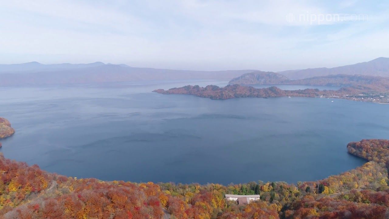 (无人机航拍视频)十和田湖:蓝湖映红叶