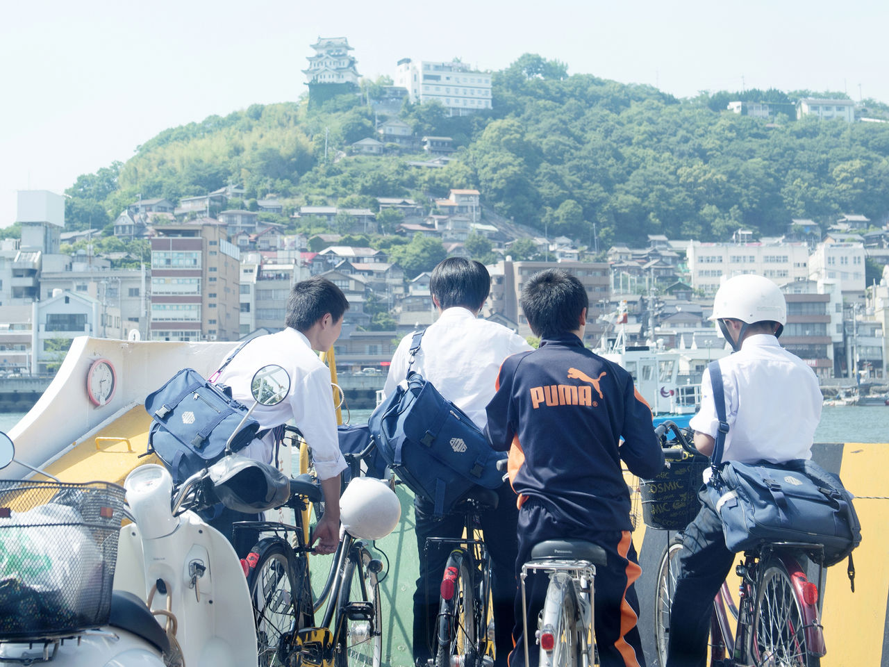 尾道和向岛之间的渡船。当地中学生靠渡船上下学,骑行者也可以带着车上船