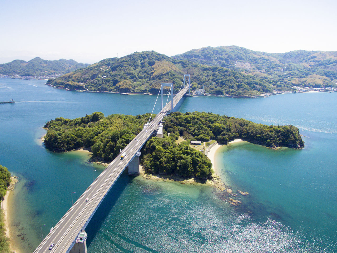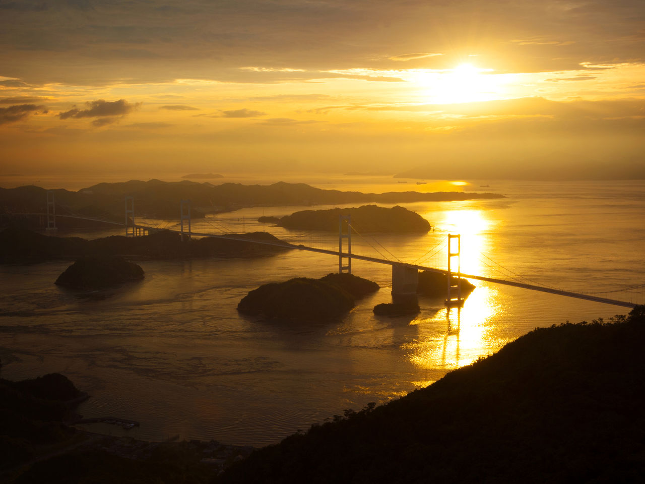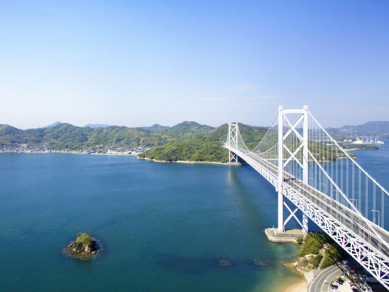 大岛因出产高级石材“大岛石”而闻名。从龟老山展望公园可以欣赏来岛海峡的落日,景色美不胜收。接下来,穿过岛波海道中最长的来岛海峡大桥(全长4公里),就到达了这趟旅程的终点——位于四国本岛的今治市。