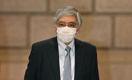 日本银行行长黑田东彦进入日银总部出席金融决策会议(28日上午,东京都中央区,记者团代表摄影)