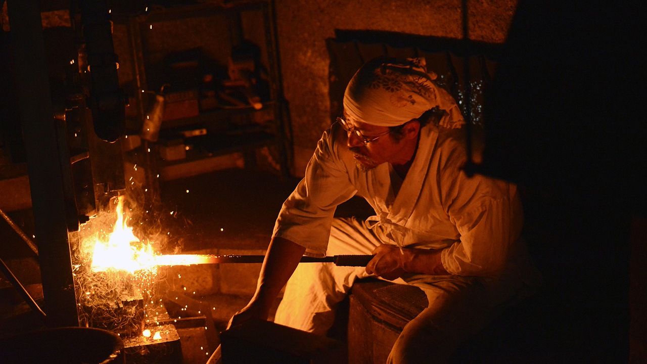 日本刀曾被称为“武士之魂”。自平安时代(794-1192年)起,武士的时代持续了近千年,最终因明治维新画上句号。废刀令颁布后,佩刀的武士逐渐消失。第二次世界大战结束后,武士道精神受到否定。在联合国军总司令部(GHQ)占领时期(1945-1952年),就连剑道使用的竹刀也被禁止。现今,根据《枪炮刀剑类持有等取缔法》规定,未经许可不得持有日本刀,但制作日本刀的工匠并没有消失。目前,日本制作工艺美术品刀剑的工匠约有350人,宫入法广是其中最受瞩目的工匠之一,他曾复原大都会艺术博物馆收藏的铁剑。在宫入法广手中诞生的刀究竟有何魅力,为何能引起人们的关注?