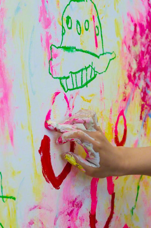 “我是尽力回到儿时的心境和初衷来作画的,每个人小时候都有过不加思考,只是拼命涂写画画儿的经历,观众看了我的画,可能会回忆起那时的心境吧。”