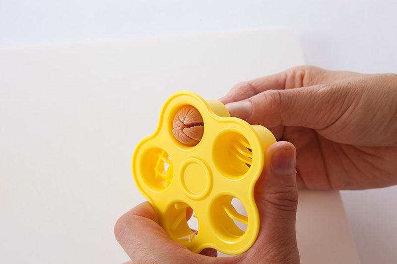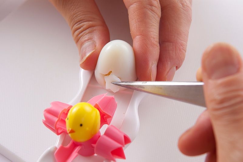 鹌鹑蛋的蛋黄居于正中时,做出来的效果更美观。所以,蛋要煮透,这是关键。