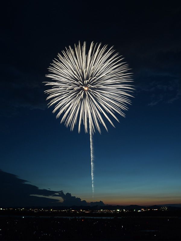 Fireworks are a Nagaoka tradition. The city’s two-night fireworks display over the Shinano River on August 2 and 3 draws nearly a million visitors annually. It ranks with counterparts in Tsuchiura, Ibaraki Prefecture, and Daisen, Akita Prefecture, as one of the three largest in Japan. The display consists mainly of ring-shaped bursts created with shells 90 centimeters in diameter.