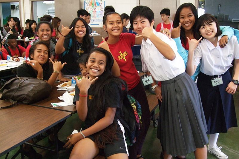 The Nagaoka students visit a Honolulu school and interact with students there in January 2015. Photo courtesy of Nagaoka City.