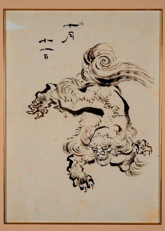 A Hokusai drawing of a lion from his Nisshin joma (A Daily Charm Against Evil) series. (From the collection of the Hokusaikan Foundation.)