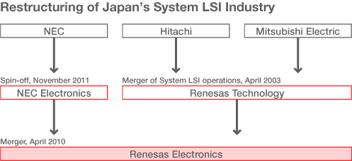 The crisis facing Japan’s semiconductor industry is much bigger than Elpida’s. The system LSI (large-scale integration) business is hemorrhaging from multiple wounds. Semiconductor giant Renesas Electronics is scrambling to cut costs by consolidating its domestic production sites (many of them inherited when the company was formed from a merger with NEC Electronics in 2010), including the former Yamagata Factory of NEC Electronics. Now the Yamagata fab has the opportunity to spin off and achieve profitability as a foundry, a facility that fabricates chips designed by other companies. With the backing of Japanese manufacturers and American businesses like IBM—which had a manufacturing agreement with the Yamagata plant when it was part of NEC Electronics—such a facility could compete with Taiwan Semiconductor Manufacturing Co., currently the world’s largest chip foundry. If METI were smart, it would actively encourage a shift to this new, more profitable model. Yet according to recent reports, the plan favored by Innovation Network Corporation of Japan—a major private-public investment fund—would dismantle the Yamagata facility rather than put its assets to work.