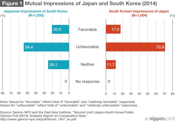 Relations between Japan and South Korea have sunk to what many consider their lowest point since the establishment of diplomatic relations in 1965. Years have passed without a bilateral summit, and Japan’s image among South Koreans remains overwhelmingly negative. In the results of the Joint Japan–South Korea Public Opinion Poll conducted last June by the nonprofit organization Genron NPO, only 17.5% of South Korean respondents recorded a favorable impression of Japan, while 70% indicated an unfavorable impression (figure 1).