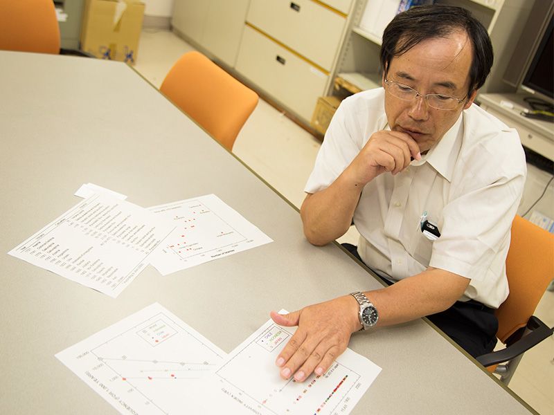 We used to rely on GPS to monitor crustal deformation, but recently we’ve been analyzing direct satellite data. By comparing three-dimensional topographical data at one-month intervals we can determine if any section of the mountain is bulging or collapsing. This has helped tremendously in alerting us to topographical changes that occur before an eruption. For example, prior to the Mount Hakone eruptions that began last June, we were able to detect deformations affecting an area of about 100 meters square, which would never have been possible using GPS. We now have access to this sort of detailed data for any volcano in Japan, so if there’s anything unusual going on, we can spot it right away. We’ve been watching volcanoes like Sakurajima and Mount Fuji continuously.