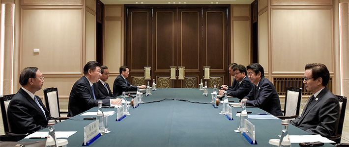 Furthermore, at the meeting with Abe, Xi was not accompanied by the two Politburo members in his innermost circle of advisers, Central Policy Research Office Director Wang Huning and CPC General Office Director Li Zhanshu, who were present at all the other bilateral sessions. This was the same sort of staging as at Xi’s two previous meetings with Abe. As one Chinese government official explained, “The meeting was unofficial, and improvement in bilateral ties has not yet been achieved.” The arrangements for the session reflected this.