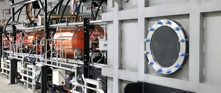 XFEL Undulator Hall; the XFEL is generated from the undulators lined up in the background of this photo.