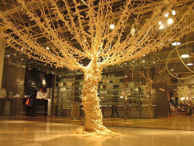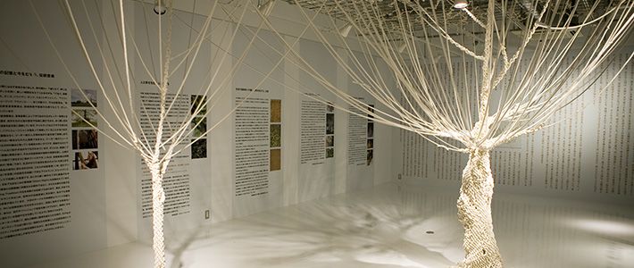 The first phase of the event explored the role played by the winter solstice in the origins of so many festivals held in the last days of the year, including Christmas. Two trees knitted from white rope filled the exhibition space. The knitted rope roots came together to form trunks and branches reaching the ceiling. The work’s creator, Sanada Takehiko, has shown installations made from clothing and textiles in and outside of Japan.
