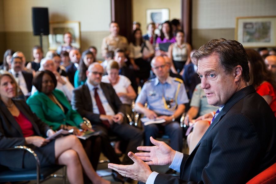 Access to political leaders and the insight they can share is a helpful part of a program. Here Congressman Michael Turner (R-OH) addresses participants in the NATO After the Warsaw Summit discussion, held on July 12, 2016. (© German Marshall Fund)