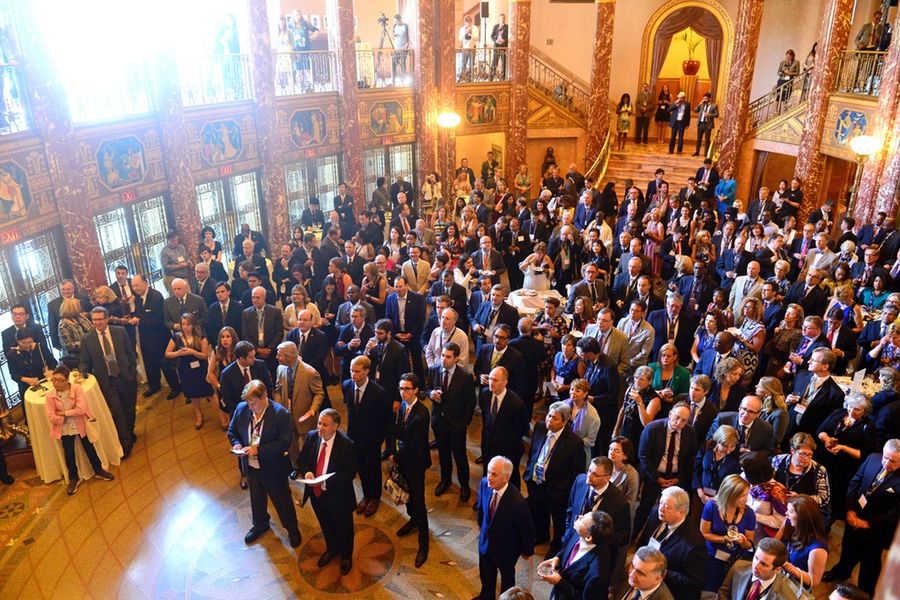 The more the merrier: Alumni of GMF programs gather in Cleveland’s Severance Hall for an event to mark this year’s US national political conventions. (© German Marshall Fund)