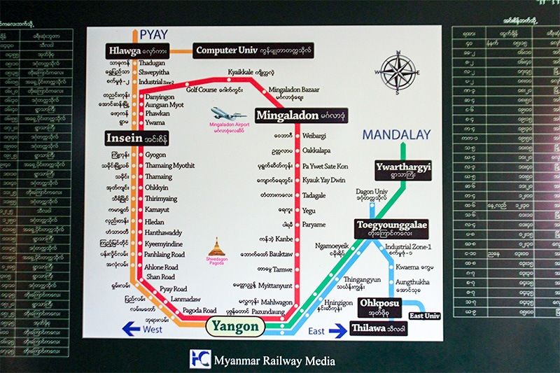 The Yangon Circular Railway is marked in red.