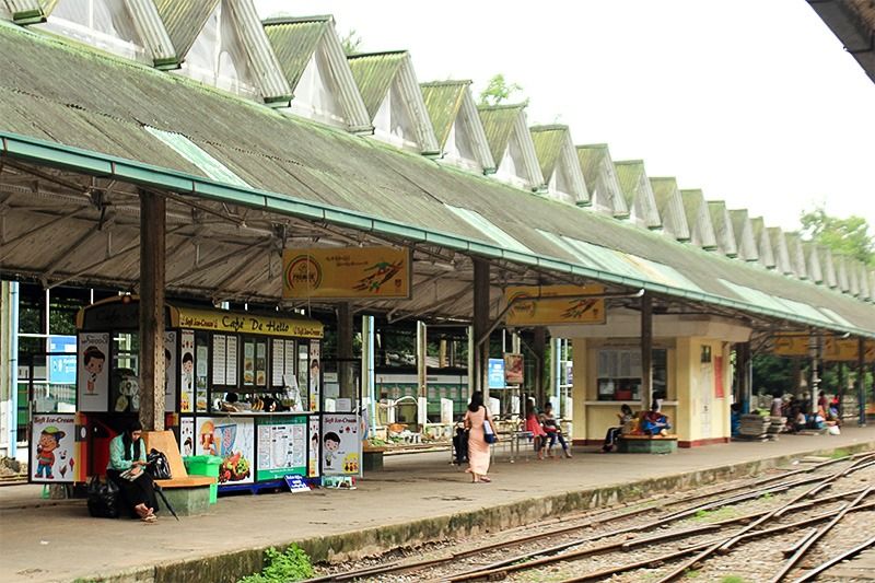 There are few passengers around lunchtime at the YCR platform in Yangon Central Station.