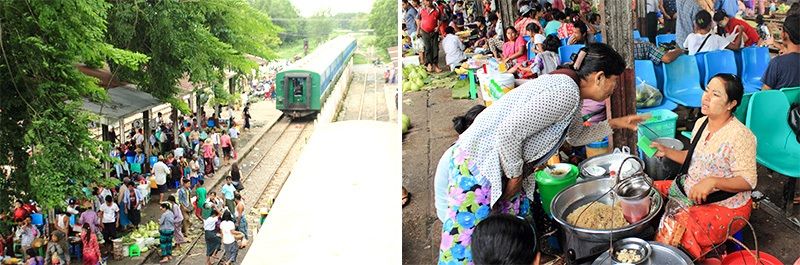 The cheapest tickets on the YCR cost 100 kyat, or around ¥10, which is half the price of those for the bus. There is no limit to the amount of luggage, so a lot of the passengers are peddlers from the edge of the city.