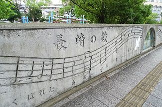 The score and lyrics of the song “The Bells of Nagasaki” are carved on a wall near the Nyokodō.