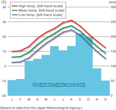 | Average Temperature and Precipitation Average annual temperature, 1981–2010: 16.3ºC (61.3 ºF) Average annual precipitation, 1981–2010: 1,528.8 mm (60.18 inch) | ![]() |
