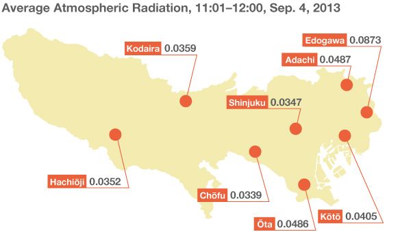 One concern that many visitors to Tokyo have is the presence of radiation from the accident at the Fukushima Daiichi Nuclear Power Station, triggered by the earthquake and tsunami on March 11, 2011. The Tokyo Metropolitan Institute of Public Health takes regular readings and publishes radiation levels in the atmosphere, tap water, and atmospheric fallout (including rain and particulate matter). Recent readings for various areas of Tokyo have been below 1 millisievert per year, the standard level of background radiation defined as acceptable for the metropolis.