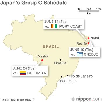 The opening group stage of the tournament kicks off on June 12 with the opening match between host Brazil and Group A rival Croatia. Japan will compete in Group C, alongside the Ivory Coast, Greece, and Colombia.
