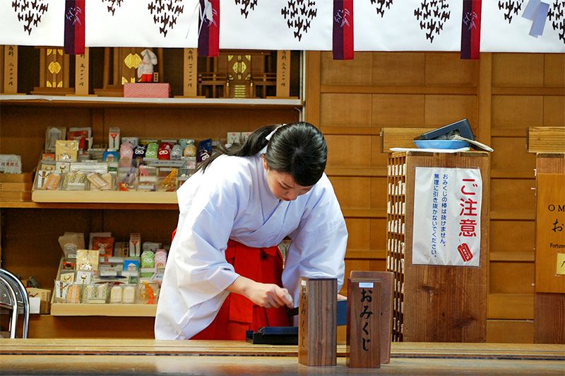 Drawing omikuji sticks at Tsurugaoka Hachimangū in Kamakura, Kanagawa Prefecture.