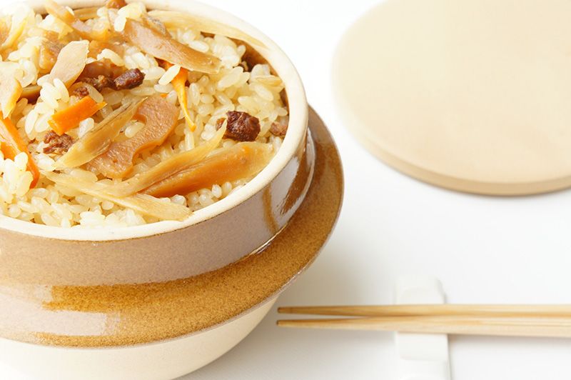 For a simplified lunch, try onigiri rice balls. These round or triangular snacks can contain many different fillings. Umeboshi (pickled plum) is an old classic, which partly won its old-time popularity because the vinegary fruit helped keep the rice from going bad even on a scorching summer day. Other common fillings include tuna salad with mayonnaise, fried shrimp, salmon, konbu no tsukudani (seaweed cooked in soy-sauce-based seasoning), and mentaiko (spicy pollock roe). Wrapping the rice balls in nori (seaweed) sheets helps them keep their shape, adds flavor and texture, and provides plenty of minerals.