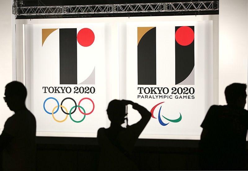 Official logos for the 2020 Summer Olympic and Paralympic Games unveiled in Tokyo on July 24, 2015. (© Jiji)