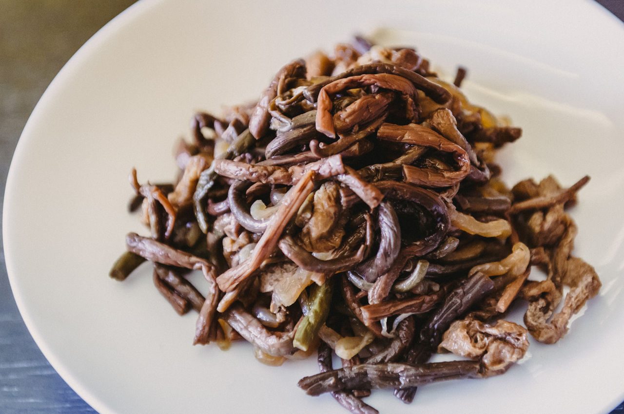 Akakogomi (red ostrich fern fiddleheads) in sesame dressing