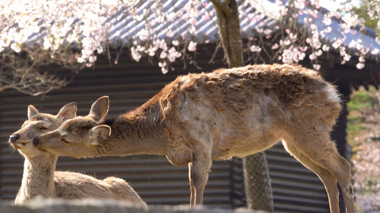 The deer and the blossoms of Nara Park make a comforting sight.