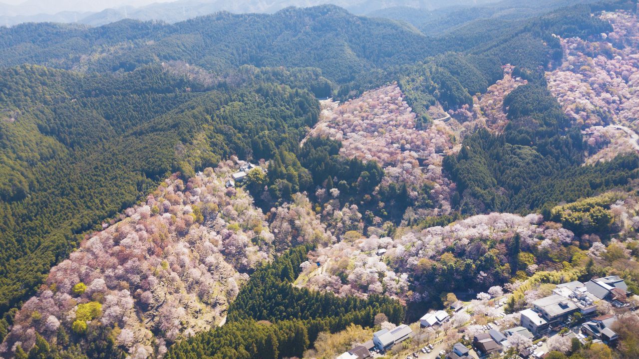 An aerial view of Mount Yoshino’s cherries.