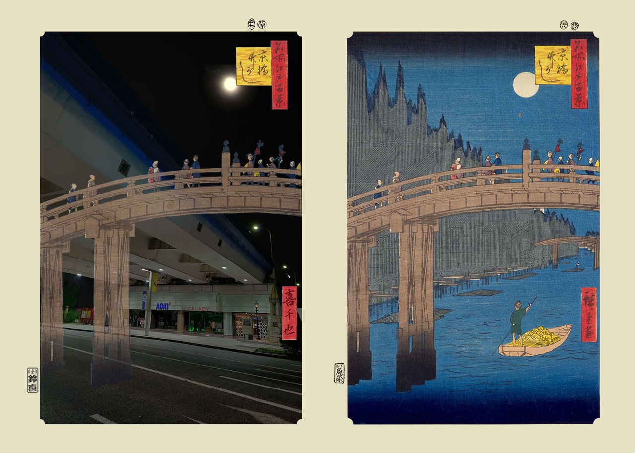Meisho Edo hyakkei, known in the West as One Hundred Famous Views of Edo, was one of ukiyo-e artist Utagawa Hiroshige’s most celebrated works, influencing even Western artists like Van Gogh and Monet. Drawn in Hiroshige’s final years and published from 1856 to 1861, the series depicted the sights of Edo (as Tokyo was then known) through the changing seasons. Audiences around the world admired Hiroshige’s inventive use of bold compositions, bird’s-eye-view perspectives, and vivid colors. A century and a half later, “ukiyo photographer” Kichiya has set himself the task of recreating each of these views with a photograph taken in the same place, at the same time of year, from the same angle. Join us in this new series at Nippon.com on a tour of these “famous views” in Edo and modern-day Tokyo, guided by Kichiya’s artistry and his knowledge of old maps and life in Edo.