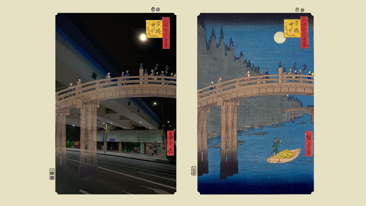 Meisho Edo hyakkei, known in the West as One Hundred Famous Views of Edo, was one of ukiyo-e artist Utagawa Hiroshige’s most celebrated works, influencing even Western artists like Van Gogh and Monet. Drawn in Hiroshige’s final years and published from 1856 to 1861, the series depicted the sights of Edo (as Tokyo was then known) through the changing seasons. Audiences around the world admired Hiroshige’s inventive use of bold compositions, bird’s-eye-view perspectives, and vivid colors. A century and a half later, “ukiyo photographer” Kichiya has set himself the task of recreating each of these views with a photograph taken in the same place, at the same time of year, from the same angle. Join us in this new series at Nippon.com on a tour of these “famous views” in Edo and modern-day Tokyo, guided by Kichiya’s artistry and his knowledge of old maps and life in Edo.