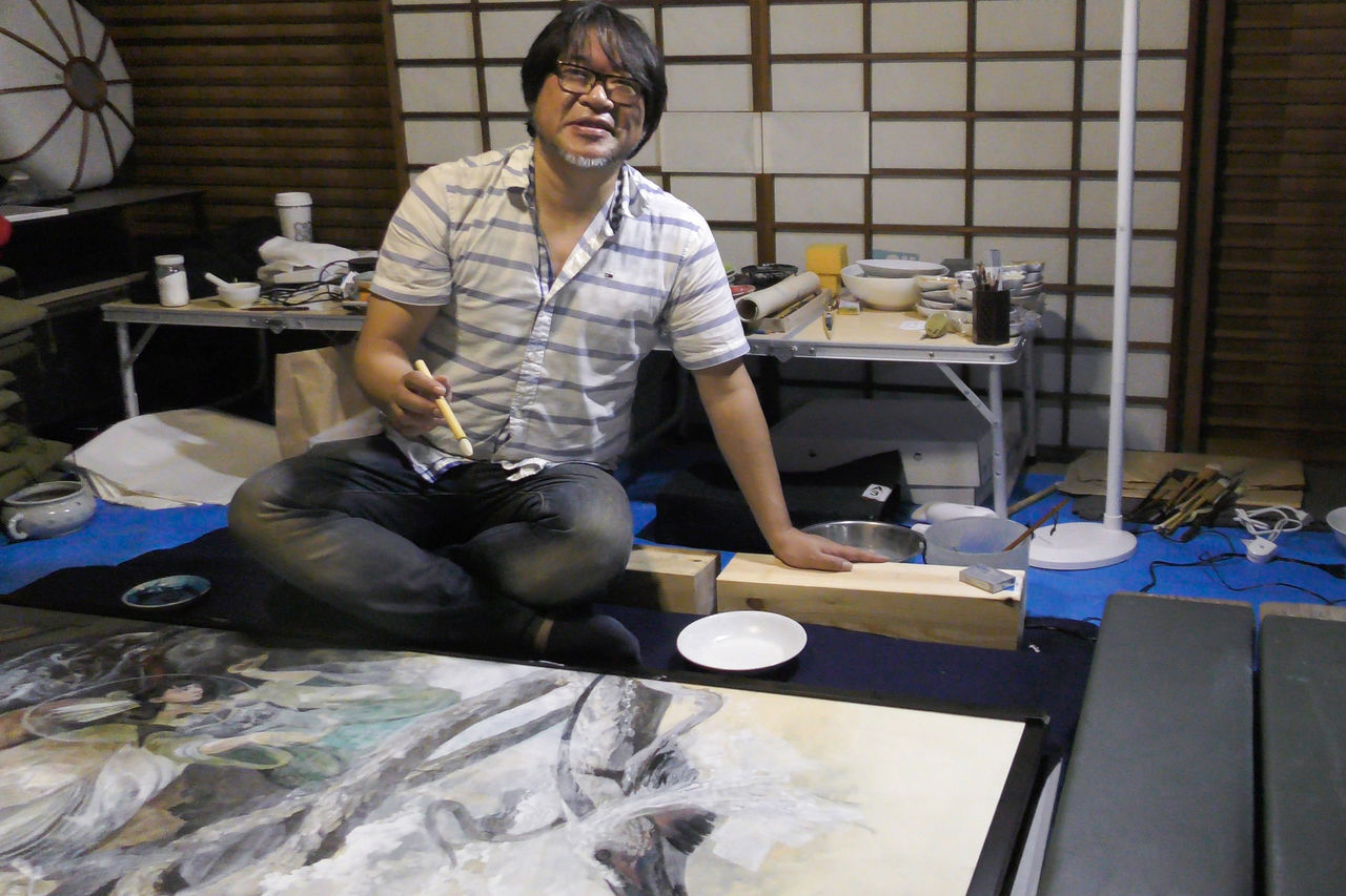 Such lively scenes are fleeting, however. Today, as usual, Kamikokuryō works alone, putting brush to paper with a harsh expression on his face. He says there are 100 parts that he still isn’t satisfied with. Also, having just turned 48, he gets a faraway look in his eye as he mutters that the work isn’t likely to be finished before he turns 60.