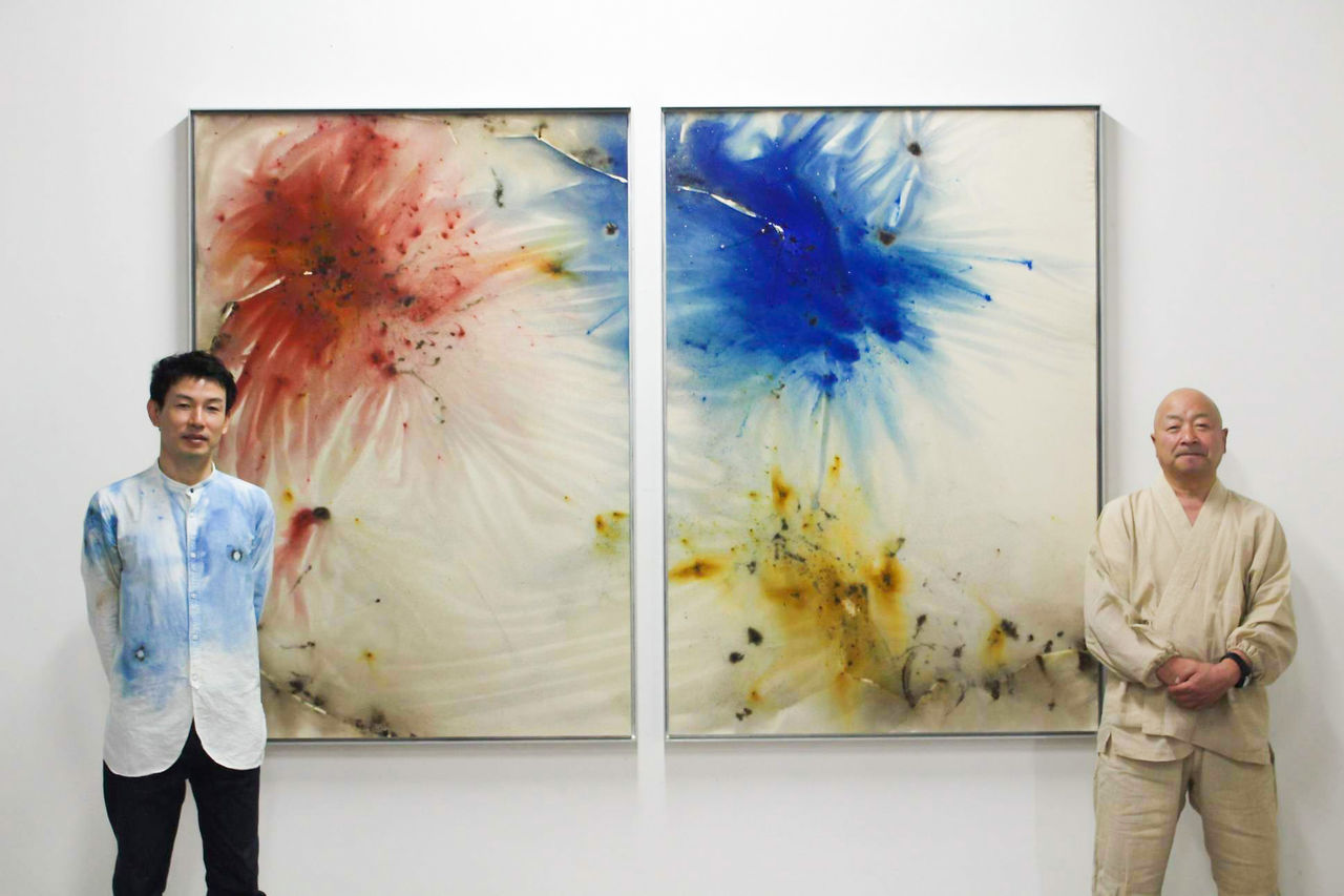 Yamaguchi and Shinjuan superior Yamada, standing before another of the artist’s creations. (© Tsunoda Ryūichi)