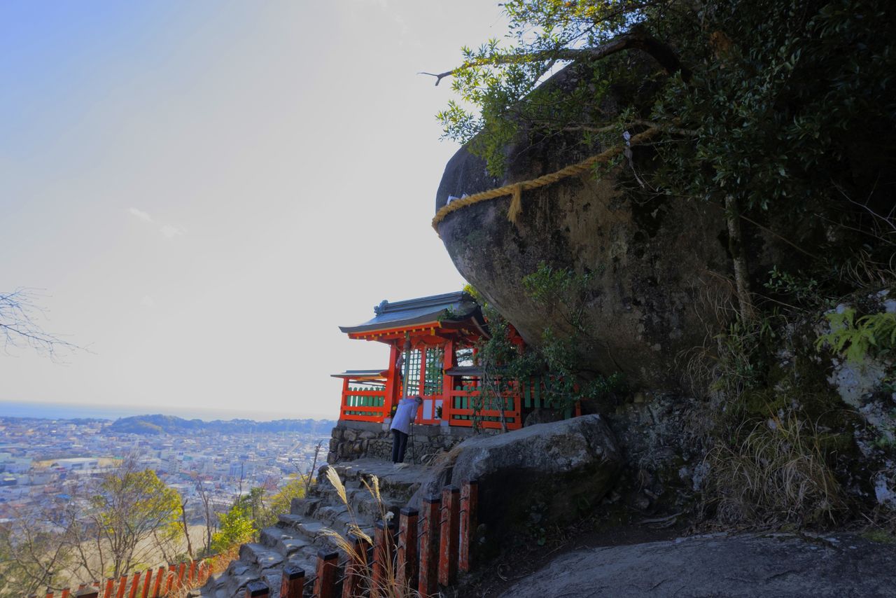 At the summit is a vermilion shrine, dwarfed by the immense boulder looming behind it. In the local dialect, gotobiki means “toad,” and indeed the rock resembles a giant amphibian squatting at the cliff’s edge, as if on the verge of tumbling into the abyss. Standing before this precariously thrusting monolith, one cannot help but feel awestruck. It is easy to imagine how ancient worshippers sensed the presence of the divine by gazing up at this stone.