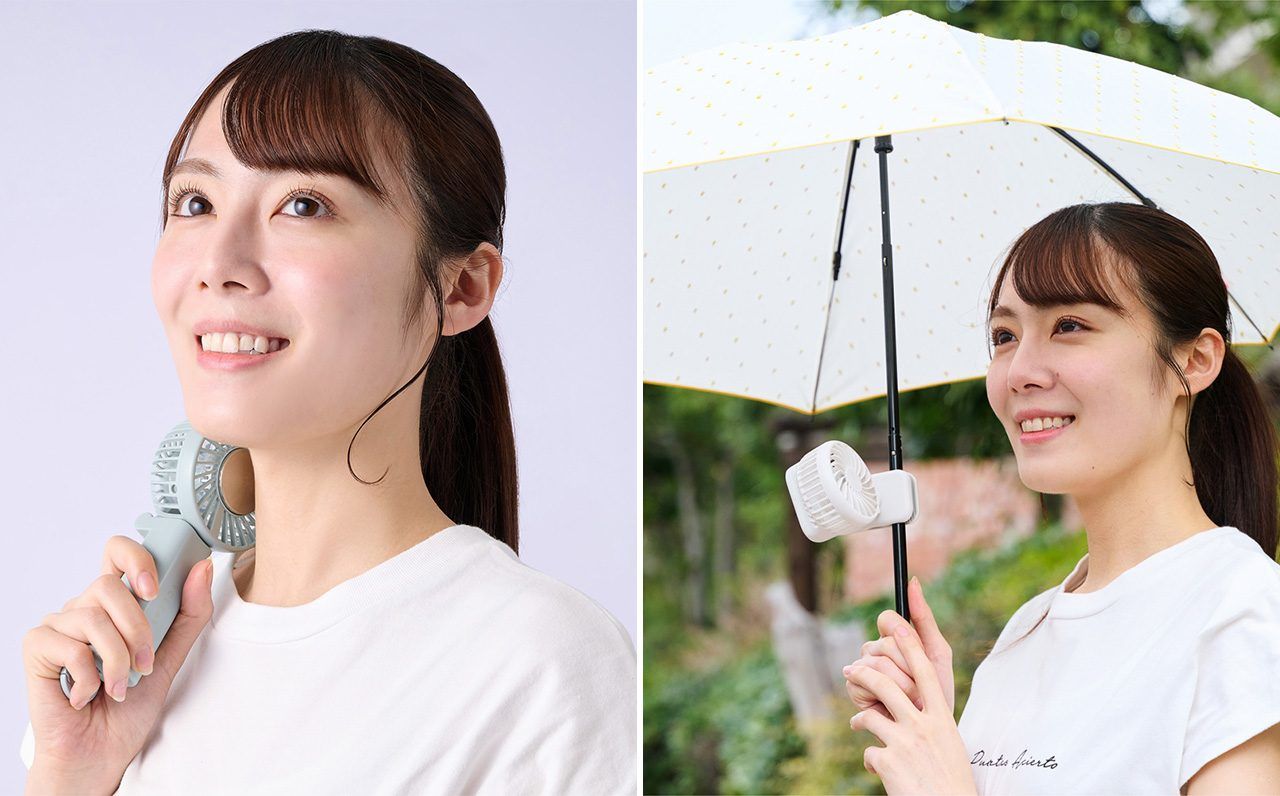 First popular in China and South Korea, portable fans started to catch on in Japan around 2018. Initially, they were just miniature versions of standard fans, but they have gradually evolved to include new features. Last year, fans equipped with “cooling plates” created a buzz. These are metal plates that use Peltier cooling technology to rapidly bring the temperature down by around 13° Celsius when applied to the neck, working in powerful combination with the breeze from the fan.
